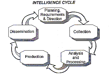 That is, COLLECTION is not a specific activity such as surveillance or interception, but rather a step in the intelligence cycle (see picture of intelligence cycle above). COLLECTION is the step that transforms requirements into information via specific tasking/targeting.